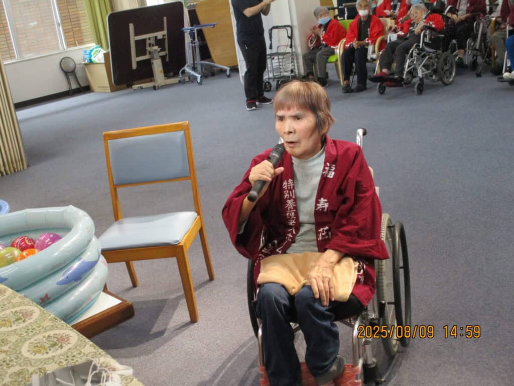 8月9日、施設内にて「夏まつり」を開催しました。今年は感染対策のため、職員とご利用者のみでの実施となりましたが、皆さま笑顔で楽しいひとときを過ごされました。