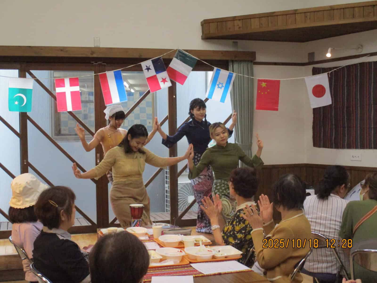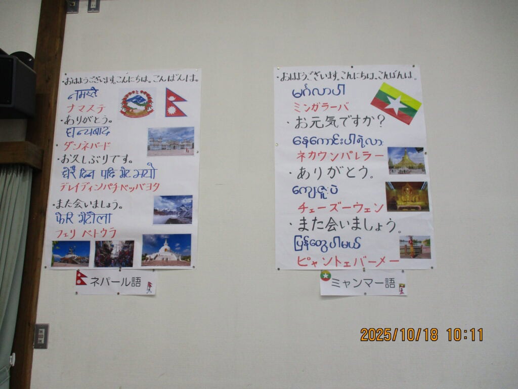 また、料理だけでなく、伝統的な民族衣装の紹介や、鮮やかな踊りの披露、ネパール語・ミャンマー語の挨拶紹介コーナーも設けられ、多くの方が興味津々に見入っていらっしゃいました。子どもから高齢の方まで、世代を超えて楽しく交流する姿が見られ、会場全体が温かい雰囲気に包まれました。
