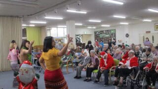 お知らせ クリスマス会を開催しました 施設内にて、クリスマス会を行いました。当日は、ミャンマー人スタッフによる踊りの披露や、利用者の皆さんによるカラオケなど、会場が一体となって楽しめる時間となりました。 スタッフの踊りに手拍子を送られたり、サンタの衣装を身に着けて歌を披露された... 2025.12.27 お知らせ