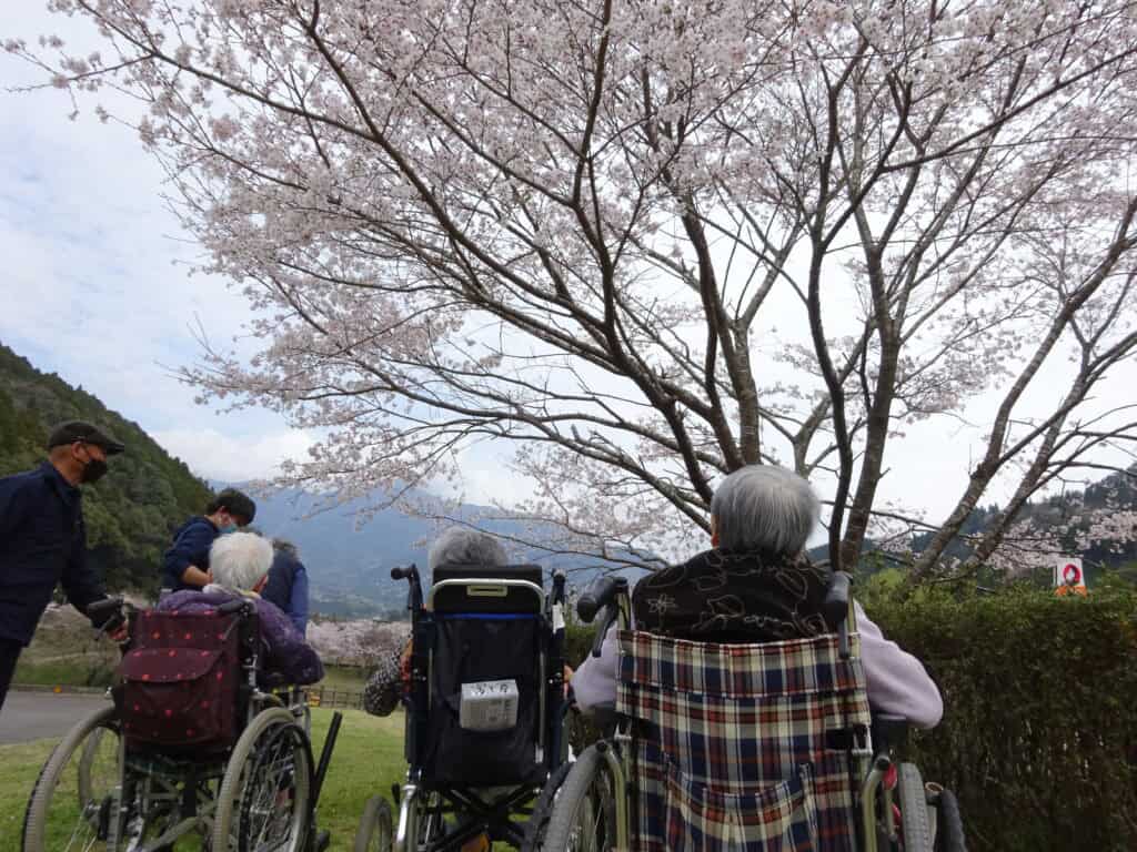 桜の花見 2026.03.29 春の訪れを感じる季節となり、当施設ではお花見を実施いたしました。今回は、市房ダムへ外出する組と、福寿荘前で桜を楽しむ組の二手に分かれて行いました。 市房ダムでは、雄大な景色とともに満開の桜を眺め、自然の美しさに触れるひとときとなりました。福寿荘前でも、穏やかな春の日差しの中でゆっくりと桜を楽しまれ、「きれいだね」と笑顔で会話が弾む様子が見られました。 それぞれの場所で春を感じていただき、心和む時間を過ごしていただくことができました。今後も季節を感じられる行事を大切にしてまいります。